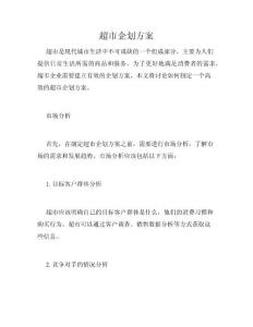 超市企划方案超市是现代城市生活中不可或缺的一个组成部分,主要为人们提供日常生活所需的商品和服务。为了更好地满足消费者的需求,超市企业需要建立有效的企划方案。本文将讨论如何制定一个高效的超市企划方案。