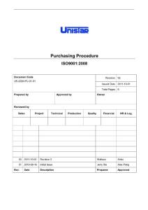 PurchasingProcedure ISO9001:2008Document Code US-QSM-PU-01-01 Revision 02 Issued Date 2011-10-01 Tot