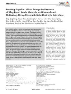Boosting Superior Lithium Storage Performance of Alloy‐Based Anode Materials via Ultraconformal Sb Coating–Derived Favorable Solid‐Electrolyte InterphaseBoosting Superior Lithium Storage Performance of Alloy‐Based Anode Materials via Ultraconformal Sb Coating–Derived Favorable Solid‐Electrolyte InterphaseBoosting Superior Lithium Storage Performance of Alloy‐Based Anode Materials via Ultraconformal Sb Coating–Derived Favorable Solid‐Electrolyte Interphase
