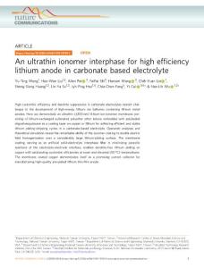 崔屹 锂负极 NC 碳基电解液 An ultrathin ionomer interphase for high efficiency lithium anode in carbonate based electrolyte崔屹 锂负极 NC 碳基电解液 An ultrathin ionomer interphase for high efficiency lithium anode in carbonate based electrolyte崔屹 锂负极 NC 碳基电解液 An ultrathin ionomer interphase for high efficiency lithium anode in carbonate based electrolyte