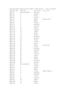GREGORIAN-LUNAR CALENDAR CONVERSION TABLE OF 2014 (JIA-WU - YEAR OF THE HORSE) GREGORIAN DATE LUNAR DATE DAY-OF-WEEK SOLAR TERMS 2014/1/1 12TH LUNAR ...