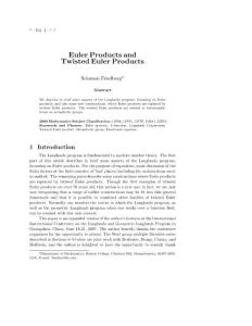 ?–?EulerProducts andTwisted Euler ProductsSolomon Friedberg*AbstractWe describe briefsome aspects La