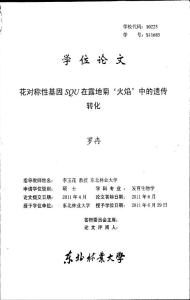l、,、;,}学校代码:10225学号:S11685学位论文花对称性基因阳U在露地菊‘火焰,中的遗传转化指导教师姓名:申请学位级别:论文提交日期:授予学位单位:琴鞍UniversityCode:102