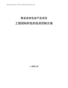 泓域/散装流体包装产品项目工程招标阶段的投资控制方案散装流体包装产品项目工程招标阶段的投资控制方案xx有限公司w .docin.com泓域/散装流体包装产品项目工程招标阶段的投资控制方案目录一、合同价