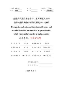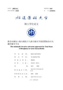 分类号:R687.4+2 学校代码:10392 学科专业代码:105109 号:2151003521硕士学位论文 髌旁内侧切口股内侧肌下入路全膝关节表面置换治疗内翻性膝关节炎 minimallyinv