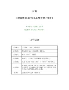 治疗小儿肱骨髁上骨折(医疗卫生范文)