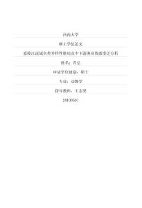 西南大学硕士学位论文嘉陵江流域鱼类多样性格局及中下游渔业资源变迁分析姓名:青弘申请学位级别:硕士专业:动物学指导教师:王志坚20100501摘要嘉陵江流域鱼类多样性格局及渔业资源变迁分析动物学专业硕士