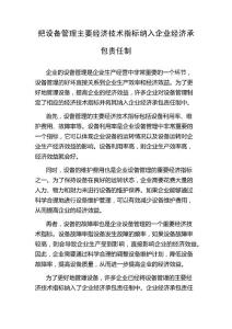 - 把设备管理主要经济技术指标纳入企业经济承包责任制把设备管理主要经济技术指标纳入企业经济承包责任制把设备管理主要经济技术指标纳入企业经济承包责任制