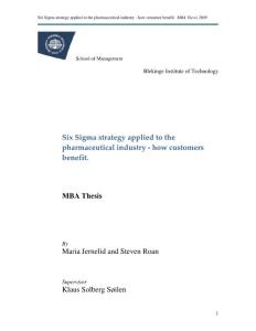 SixSigma strategy applied pharmaceuticalindustry howcustomer benefit MBA Thesis 2009 1School Managem