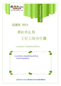 应届生2012 应届 工行上海分行篇应届生求职大礼包——工行上海分行篇 应届生求职网YingJieSheng.COM 目录 第一章 工商银行简介............................