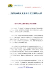 上海陆家嘴某大厦物业管理服务方案我公司承担大厦管理服务项目的优势我公司通过十多年的努力,在上海物业管理行业中建立了良好的品牌声誉。作为一家具有一级资质的物业管理企业,我公司在企业综合实力、物业管理能力