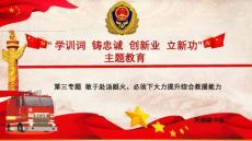 - 学训词铸忠诚 创新业 立新功”主题教育第三专题 敢于赴汤蹈火,必须下大力提升综合救援能力凤栖路中队救RESCUE援消防 教育目的:引导广大队员树立战斗力标准,以时不我待、只争朝夕的紧迫感加快转型升级,