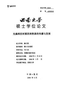 Y90153l单位代码!Q学号2QQ3!西弗虫学硕士学位论文先秦两汉时期西南铁器的传播与发展论文作者:秦立凯指导教师:黎小龙教授学科专业:专门史研究方向:西南区域开发史提交论文日期: 2006年4月2
