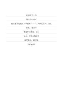 陕西师范大学硕士学位论文两汉系列历史演义小说研究——以《西汉演义》为主姓名:孙亚萍申请学位级别:硕士专业:中国古代文学指导教师:赵望秦20070401两汉系列历史演义小说研究——以《西汉演义》为主孙亚