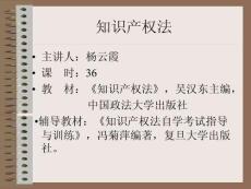 材:《知识产权法》,吴汉东主编,中国政法大学出版社 •辅导教材:《知识产权法自学考试指导 与训练》,冯菊萍编著,复旦大学出版社。 •知识产权法讲义 •知识产权法案例 •知识产权法律文本 •复习题集 知