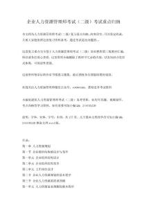 企业人力资源管理师考试(二级)考试重点归纳本文档为人力资源管理师考试(二级)复习重点归纳,内容详实,可以肯定的说,只要大家能依照这套复习资料备考,通过考试是没问题的。。 这套复习重点完全基于人力资源管