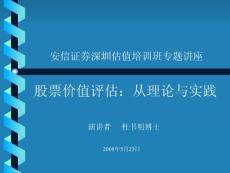 安信证券深圳估值培训班专题讲座股票价值评估:从理论与实践股票价值评估:从理论与实践演讲者 演讲者 杜书明博士 杜书明博士2008年5月23日课程目标 课程目标能够理解研究报告中所运用的各 能够理解研究
