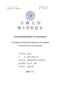 号:U213单位代码:10183 研究生学号:2006442011 硕士学位论文季冻区铁路路基冻害原因分析与整治措施研究 preventionmeasures seasonalfrozen area