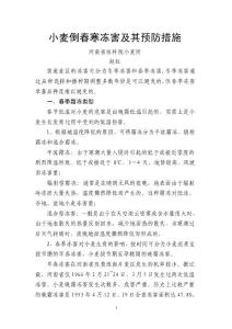 小麦倒春寒冻害及其预防措施河南省农科院小麦所 黄淮麦区的冻害可分为冬季冻害和春季冻害,冬季冻害通过品种选择和播种期调整多数年份是可以避免的,但春季冻害单靠品种是难以避免的。一、春季霜冻类型 春节低温对