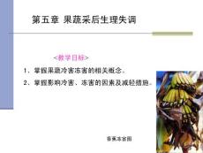 1第五章果蔬采后生理失调<教学目标>1、掌握果蔬冷害冻害的相关概念。2、掌握影响冷害、冻害的因素及减轻措施。香蕉冻害图2果蔬采后生理失调(生理病害):指由非病原菌微生物引起的果蔬成熟衰老正常生理代谢紊