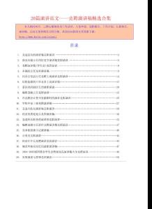 20篇演讲范文——竞聘演讲稿精选合集本人耗时两月,已精心整理各类工作总结、入党申请、述职报告、工作计划、汇报体会、演讲稿、活动文案等精品文档合集,欢迎访问我的主页搜索下载:/yejunz