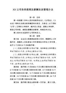 XX公司各类假期及薪酬发放管理办法.docx