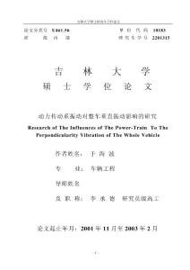 -论文分类号U461.56 动力传动系振动对整车垂直振动影响的研究Research PerpendicularityVibration WholeVehicle 作者姓名: 车辆工程导师姓名 研究员级