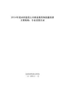 2014年度承担退役士兵职业教育和技能培训主要机构、专业设置目录民政部优抚安置局二O一四年十一月承担退役士兵职业教育和技能培训主要机构、专业设置索引北京市……………………………………………………………