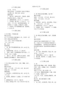 餐次及用量:(日均量约1000 克)每隔4小时喂1 次,每次120~220 1时每次加100克,任选1 次/日,上午10时、下午2 时,两次喂奶时间加,开始每次 汤匙43~10 食:母乳、牛奶或豆浆餐