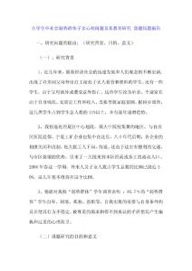 小学生中社会弱势群体子女心理问题及其教育研究课题结题报告 一、研究问题的提出;(研究背景、目的、意义) (一)、研究背景 1、近几年来,随着经济社会的迅速发展和人们观念的不断更新,出现了许多因父母外出
