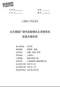 密级:——编号:——工程硕士学位论文北方某船厂现代造船模式主流程优化实施方案研究硕士研究生:指导教师:企业导师:学位级别:工程领域:所在单位:论文提交日期:论文答辩日期:学位授予单位:许月仲韩端锋教授