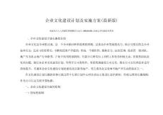 企业文化建设计划及实施方案(最新版)欢迎关注人力资源管理师微信公众号:HRM1688,获取更多行政相关资料 一、企业文化建设计划实施的目的 企业文化是企业的灵魂,是一个企业精神和价值观的体现,是推动企