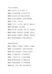 安全生产宣传标语:BS01 生命只有一次,安全伴君一生 BS02 安全连着你我他,平安幸福靠大家 BS03 你对违章讲人情,事故对你不留情 BS04 安全来自长期警惕,事故源于瞬间麻痹 BS05 生产