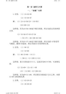 1.计算:(1)24+44+56(2)53+36+47 解:(1)24+44+56=24+(44+56) =24+100=124 这样想:因为44+56=100是个整百的数,所以先把它们的和算出来.
