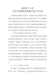 沈阳理工大学大学生创新创业训练计划工作方案 为贯彻落实《教育部关于做好“本科教学工程”国家级大学生创新创业训练计划实施工作的通知》(教高函[2012]5 号)文件精神和《辽宁省教育厅办公室关于报送大学