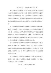 1第九部分投资监理工作方案我公司通过多年从事财务(投资)监理服务经验,认为设计阶段和招投标阶段是投资控制的核心阶段,我们将在设计阶段协助建设单位加强对设计方案的比选、认证,及时提供设计方案比选认证过程
