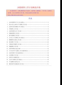 20篇销售工作计划精选合集本人耗时两月,已精心整理各类工作总结、入党申请、述职报告、工作计划、汇报体会、演讲稿、活动文案等精品文档合集,欢迎访问我的主页搜索下载:/yejunzi目录1.