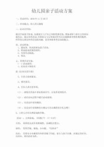 - 文章介绍了幼儿园亲子活动方案,包括活动时间、活动地点、活动准备、具体活动方案等,是一篇指导性很强的文章。