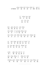 第一课声调儿歌一声平,好像汽车平地走二声扬,好像汽车爬高坡三声拐弯,汽车下坡又上坡四声降,汽车慢慢下高坡精选w .docin.com.第二课学习六个单韵母 ǜ第三课熟读单韵母1 第八课声母 小马跑步