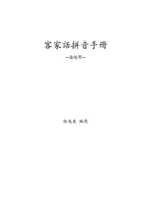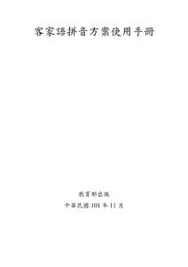 客家語拼音方案使用手冊教育部出版 中華民國101 年11 多年來,客家語拼音方案的推廣已頗具成效,未來本部亦將持續透過網路教學、辦理研習等方式,讓各界廣為學習使用。期望本修訂版使用手冊能符合各腔客家語