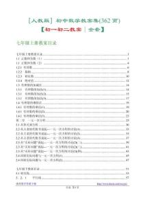[人教版]初中数学教案集(362页)【初一初二教案|全套】七年级上册教案目录TOC 七年级上册教案目录I1.1 正数和负数(1) 11.1 正数和负数(2) 41.2.1 有理数 61.2.2 数轴