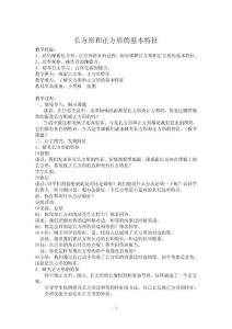 长方形和正方形的基本特征教学目标: 1、经历探索长方形、正方形特征的过程,初步掌握长方形和正方形的基本特征。 2、培养观察、操作及思维能力。 3、培养自主学习、合作交流的能力。 教学重点:探索长方形、