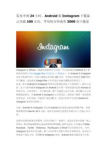 发布不到24小时,Android版Instagram下载量已突破100万次,平均每分钟就有2000的下载量万次,不到,下载,发布,下载量,发布,下载