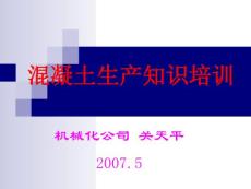 机械化公司关天平2007.5第一节:关于混凝土的基本知识 1.1混凝土主要构成 1.1.1水泥 1.1.1.1通用水泥品种主要有以下几类: 硅酸盐水泥、普通硅酸盐水泥、矿渣硅酸盐水泥、火山灰质硅酸盐水