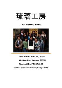 琉璃工房LIULI GONG FANG Visit Date Mar.25, 2009 Written StudentID PA6974058Institute CreativeIndustry De
