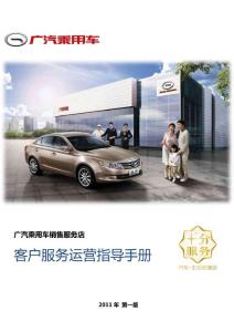 广汽乘用车销售服务店宠户朋务运营挃导手册 2011 1.1售后环境不硬件布置 1.2人员礼仪 1.3客户关爱 131.4 客户休息等待 141.5 投诉处理 161.6 道路救援服务 232.1 核心