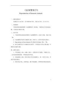 《家畜繁殖学》Reproduction DomesticAnimals 一、课程设置简介 本课程共计64 学时。其中授课48 学时,实验16 学时,计3.5 学分。 二、使用教材 全国高等农业院校教材