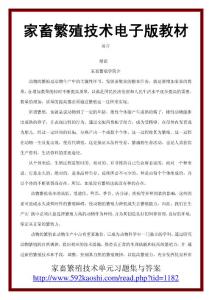 家畜繁殖技术单元习题集与答案/read.php?tid=1182 前言 绪论 家畜繁殖学简介 动物的繁殖是动物生产中的关键性环节,发展畜牧业的根本任务,