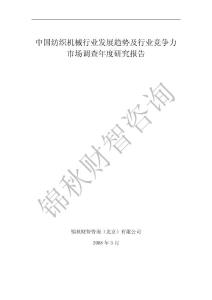 中国纺织机械行业发展趋势及行业竞争力市场调查年度研究报告锦秋财智咨询(北京)有限公司 2008 第一章纺织机械行业基本情况.......................................