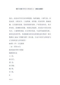 规划范文XX 镇XX 村村庄规划范文(2015-2020) 备注:此范本中相关内容和数据:地形地貌、土壤气候、河流水系、自然灾害、土地资源、水资源、经济类型、基础设施、公共服务设施、发展的优势劣势、产